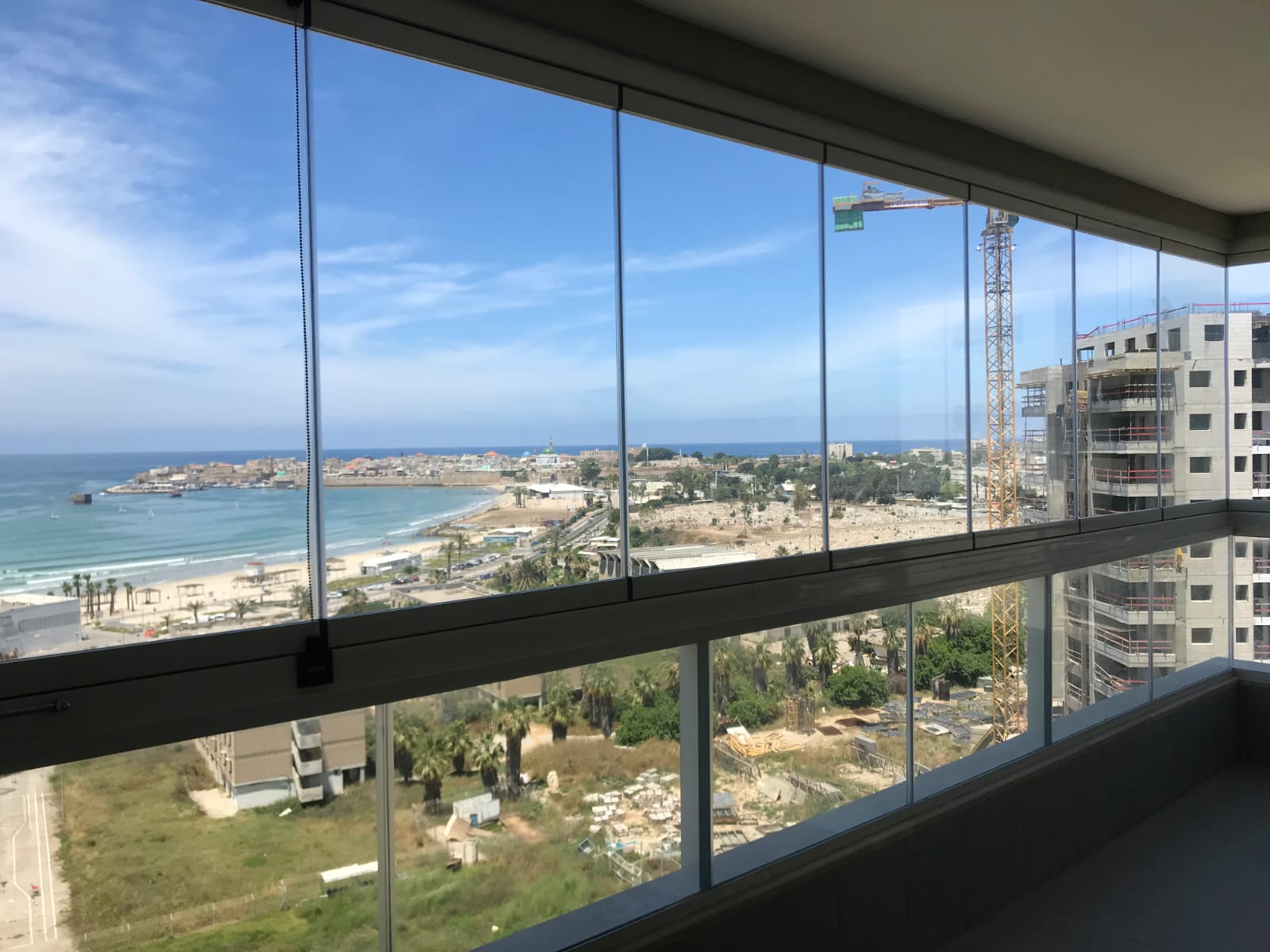 מערכת זכוכיות נאספות המיועדת לסגירת מרפסת, בעלת מראה אלגנטי,